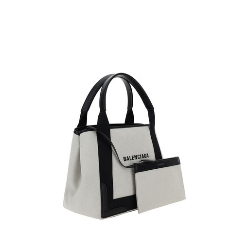 Original price $1,428.24Current price $1,301.65| /Cotton Handbag by Balenciaga, two rigid leather handles, iconic contrasting brand monogram on front, thin leather shoulder strap, snap buttons on s...