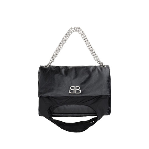 Original price $2,672.54Current price $2,320.89| /Calfskin Monaco Shoulder Bag by Balenciaga, oversized padded design, front closure via fold-over magnetic flap, three-dimensional plaque with iconi...