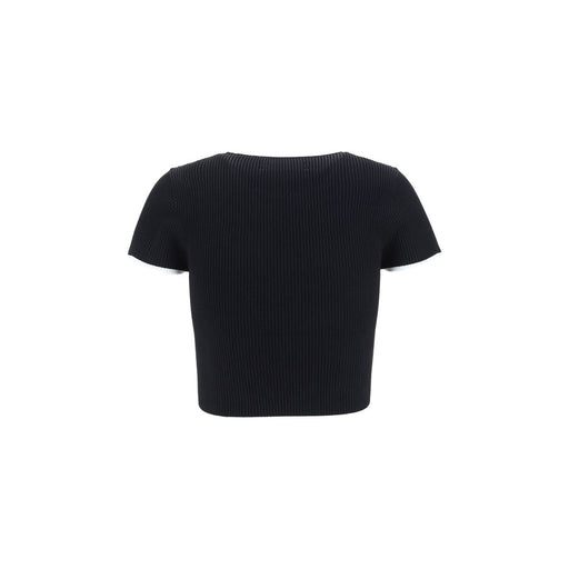 Original price $876.42Current price $642.71| /Baby T-Shirt by Amiri, cropped model, all-over ribbed design, iconic brand logo embroidered in contrast on front, monochrome pattern, slim fit.