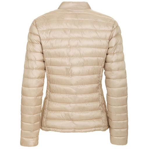 Fred Mello Chic Beige Short Nylon Down Jacket with Hidden Hood