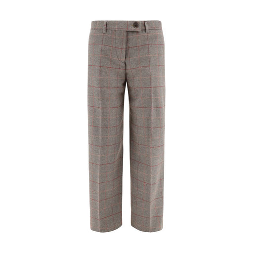 Original price $660.02Current price $465.26| /Pants by Fortela, palazzo style, multiple button front closure with metal hook and eye, side slash pockets, waistband loops, all-over tartare patte...