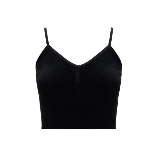 Original price $162.30Current price $144.99| /Top by Forte_Forte, cropped sleeveless pattern, thin straps, V-neck front, velvet design, monochrome pattern, slim fit.