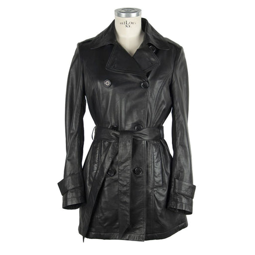 Emilio Romanelli Black Leather Women Coat