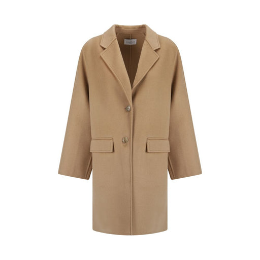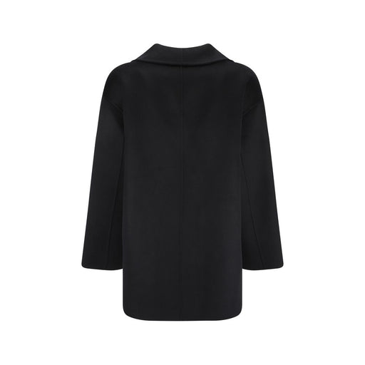 Original price $529.72Current price $360.93| /Brooklyn Wool Coat by Dynamis Studio, shawl lapels, double-breasted front button closure, two side welt pockets, monochrome pattern.