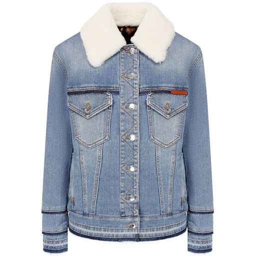 Original price $1,806.94Current price $932.90| /Dolce & Gabbana slightly washed out cotton denim jacket with button closure and eco-fur collar, chest and side pockets, leopard print lined int...