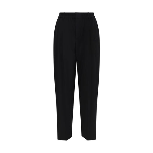 Original price $1,006.26Current price $876.42| /Black Pants by Alexander McQueen, zip closure with hook, two slant pockets on front, flared bottom, welt back pocket.