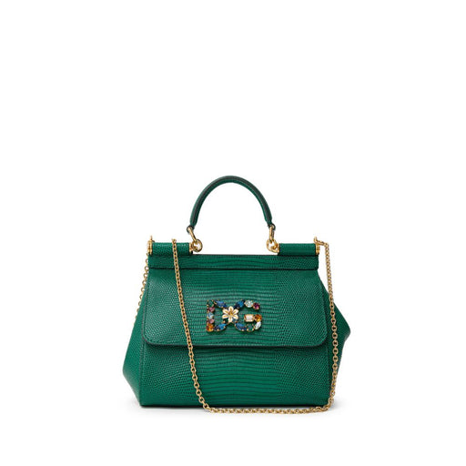 Original price $1,806.94Current price $1,249.93| /Medium Sicily Patent Leather Bag • Color: Green • Front flap with hidden double magnetic closure • Branded galvanic logo tag • Top handle and adjus...