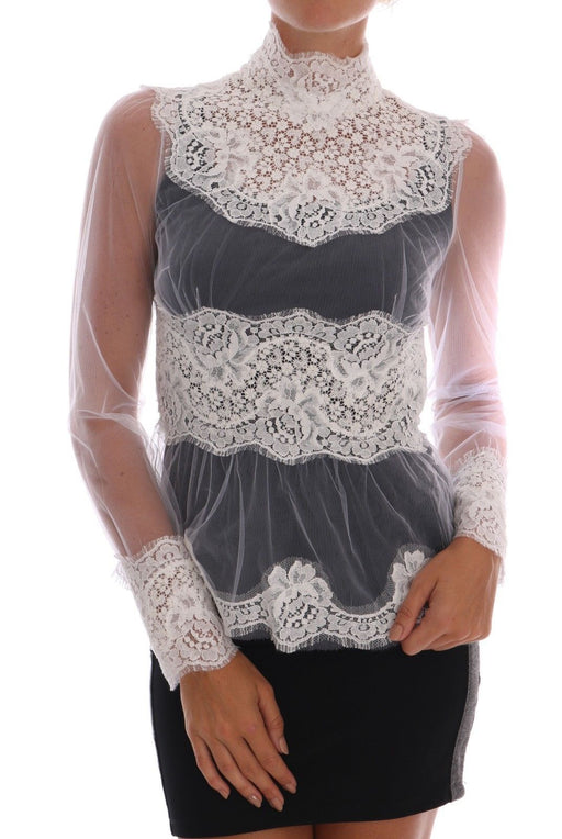 Dolce & Gabbana Elegant White Floral Lace Blouse Top