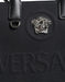 Versace Black Top Handle Canvas Leather Logo Crossbody Tote Bag