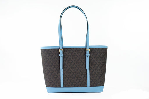 Original price $516.74Current price $276.64| /Style: Michael Kors Jet Set Travel Small Pale Blue Brown Shoulder Tote Handbag Material: Signature PVC Features: Adjustable Shoulder Straps, Inner ...
