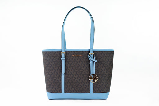 Michael Kors Jet Set Travel Small Pale Blue Brown PVC Shoulder Tote Bag Purse