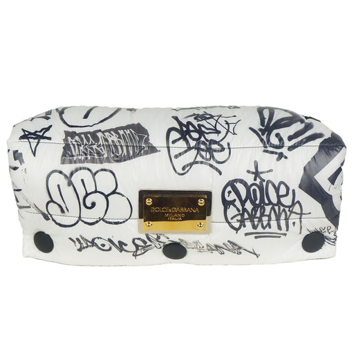 Original price $1,277.11Current price $743.77| /Dolce & Gabbana shoulder bag in soft padded nylon, button closure and internal zip, metal logo plate applied on the front, graffiti print. Meas...