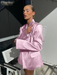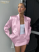 Product Name: Fashion Loose Pink Satin 2 Piece Sets Women Outfit 2024