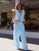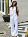 Office Lady Linen Two Piece Set For Women 2024 Fashion Sleeveless Tank Top New In Matching High Waist Wide Pants Set