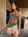 Sexy Tassel Women Two Piece Skirt Halter Lace Bra Tassel Mini Skirt Suit Beach Vacation Casual Female Bathing Suit Summer