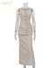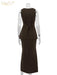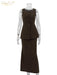 Summer Slim Brown Cotton 2 Piece Sets Women Outfit Elegant Sleeveless Tank Top With High Waist Long Skirts Set