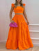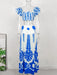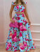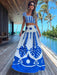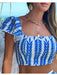 Women Two Pieces Beachwear Elegant Ruffles Sleeve Beach Dresses Leaf Print White Long Dress High Waist