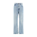 Cotton Jeans by Balenciaga, five-pocket straight style, front button and zipper closure, belt loops waistband, iconic leather patch with signature brand pressure-printed applique on back.