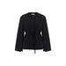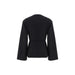 Wool Gallipoli Blazer Jacket by Crida Milano, crew neck, front closure by concealed buttons, one slit on both sleeves, matching knotted and removable belt at waist, monochrome pattern, slim fit.