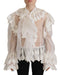 Indulge in the epitome of Italian luxury with this exquisite Dolce & Gabbana long sleeves lace top. Its elegant ruffled design and ascot collar make it a stunning piece for any refined wardrobe. Perfectly crafted from a blend of premium silk and cotton, this white blouse exudes sophistication and a timeless charm, assuring its wearer stands out with subtle opulence.