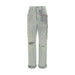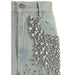 Cotton Golden Jeans by Golden Goose, button and zip front fastening, five-pocket baggy model, belt loops for waistband, leather patch with iconic brand signature pressure print applied to the back, tear drop at knees, all-over embossed shiny rhinestones on front.