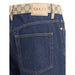Gucci’s Logo Boyfriend Jeans are a five-pocket style with a front zipper and button closure. They feature belt loops on the waistband, offering a customizable fit. The design’s signature detail is the brand’s iconic GG logo, printed at the waist, adding a touch of recognition and style. The boyfriend cut gives a relaxed and modern look, perfect for a casual yet sophisticated look.