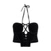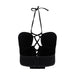 Cotton Xtina Top by Julfer, sweetheart neckline on front, adjustable lace-up bodice, hook-and-eye back closure, denim design, monochrome pattern.