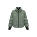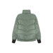 Corazon Shiny Down Jacket by Khrisjoy, high collar, front zipper closure, ribbed cuffs, two heart-shaped patch flap pockets on front, all-over quilted and padded design, adjustable hem with inside drawstring, monochrome pattern, oversize fit.