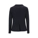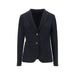 Blazer Jacket by Lardini, front closure with matching buttons, structured shoulders, classic lapels, two patch pockets, back slit, regular fit, hip-fitted design, midi length, iconic flower brooch appliqué on lapel, flared hem.