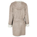 Loro Piana fabric Capolavoro double-breasted coat with hood, belt closure, 100% virgin wool, beige color with cream white interior with double stitching, two front pockets