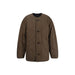 Cotton Reversible Nesmae jacket from Marant Etoile, all-over quilted and padded design, button front closure, two side welt pockets, iconic brand logo embroidered on back, monochrome pattern, oversize fit.