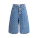 The Bermuda Moon Shorts by Marine Serre are a model with a modern and versatile design, with five pockets and a front closure with zip and button. The belt loops on the waist allow you to add a personal touch. The garment stands out for the pattern with the iconic Moon logo, applied all-over, which gives it a distinctive and contemporary look. Perfect for a casual but fashionable look, ideal for the summer season.