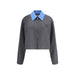 Miu Miu’s Bomber Jacket comes in a sleek and sporty design. The contrasting classic collar adds a distinctive and modern touch, creating a visual accent that perfectly matches the rest of the garment. The front zipper closure is functional and practical, while the brand’s iconic logo, sewn on the front, highlights its exclusive character and understated luxury. Adjustable button cuffs allow you to customize the fit, ensuring comfort and a perfect silhouette. The mélange pattern completes this garment.