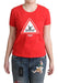 Embrace casual luxury with Moschino’s newest addition, the Chic Red Graphic Cotton Tee. This fashionable piece boasts a striking triangle swim graphic print, adding a touch of glamour to your everyday look. Made with high-quality materials and expert craftsmanship, this t-shirt features a comfortable round neck, short sleeves, and the iconic Moschino logo details. Perfect for a relaxed day out or a stylish layering option, it presents a bold red hue that is sure to make a statement. Crafted in Italy, it’s a testament to timeless style paired with modern flair.