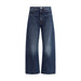 The Half Pipe Ankle cotton Jeans from Mother Denim are a wide-leg, five-pocket style that offers a loose, comfortable fit. The front closure is button and zipper, with belt loops on the waistband for an adjustable fit. A versatile garment, perfect for casual and dressy looks.