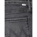The Twister Heel Cotton Jeans by Mother Denim, five-pocket straight style, front button and zipper closure, waistband loops, iconic branded signature leather pressure-printed patch applied at back.