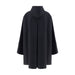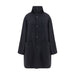 Wool Tonio Coat by Paltò, high-collared hooded design, front button closure, two front patch pockets, one front welt pocket with chest zipper, monochrome pattern, over-size fit.