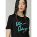 Illuminate your casual wardrobe with this dazzling black T-shirt from Patrizia Pepe. Crafted from pure cotton, this top showcases a sparkling brand design on the front, adorned with rhinestones that catch the light with every move. It’s a perfect blend of comfort and glamour.