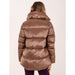 People Of Shibuya quilted down jacket in ultralight technical fabric with ‘pearl finish’ treatment. 90/10 goose down filling. Central double-slider die-cast zip with gold finish and new round logo. Bellows side openings with metal-effect die-cast zips. External welt pockets with invisible magnet button. Inner cuff in thermal lycra for greater protection from external weather and thermal performance. Logo applied in 3D lycra in colour tone. High-visibility reflective details.