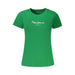 Elevate your everyday style with this effortlessly chic Pepe Jeans T-shirt. Crafted from a premium blend of 95% cotton and 5% elastane, this tee offers the perfect balance of comfort and stretch. Featuring a bold crew neck, it’s adorned with an eye-catching print and the iconic Pepe Jeans logo. The stunning green hue will inject a pop of color into your wardrobe, making it an ideal choice for those who stand out. Sustainable and trendy, this is your go-to top for casual flair.