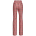 Pinko flare-fit trousers in stretch wool blend flannel with Prince of Wales design. High waist with belt loops, pockets on the sides and buttoned welt pockets on the back. Fitted leg that flares at the bottom, with a central pleat on both the front and back.