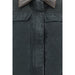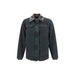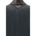 Prada Jacket with classic leather collar and front zipper closure. The design features a vintage effect with frayed hems, giving it a unique worn look. It features two flap pockets on the chest and two diagonal side pockets for added convenience. The jacket is completed by the iconic triangular logo applied on the back, adding a distinctive touch to its sophisticated and bold style.