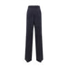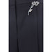 Wool Pants by Prada, front hook-and-eye and zipper closure, two side slash pockets, two welt pockets at back, belt loops at waistband, bright jewel brooch detail applied to front, monochrome pattern, regular fit.
