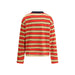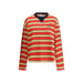 Prada’s striped cotton T-shirt is a long-sleeved design that combines comfort with distinctive style. The classic ribbed crew neck adds a touch of elegance, while the patch patch pocket with the brand’s monogrammed nameplate is an iconic and sought-after detail. The striped pattern, a timeless classic, gives the sweater a dynamic and modern look while maintaining a clean and sophisticated aesthetic.