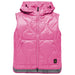 Refrigiwear light summer vest in technical fabric, fuchsia colour, with hood adjustable by elastic drawstring. Side pockets and front zip fastening.