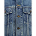 The Denim Jacket by Saint Laurent, in its cropped model, features a classic collar and a front button closure that emphasizes its elegant yet casual style. The two patch pockets on the front add a practical and distinctive touch. This garment, with its timeless style and clean lines, is perfect for creating modern and versatile looks, easily adapting to both casual outfits and more sophisticated combinations.
