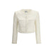 Self-Portrait’s Jacket features a front closure with hidden buttons and tone-on-tone pearls applied to the piping. It also features two appliqué welt pockets on the front, decorated with pearls, and shiny appliqué sequins to add a touch of sparkle to the jacket.