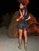 Sexy Women Black Leopard Tassel Mini Dresses Sleeveless Naked Waist Dress Summer Party Evening dress for women