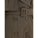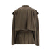 The double-breasted short Trench Coat by The Andamane is an elegant and versatile design. Featuring a wide lapel, this trench coat has long sleeves with webbed cuffs, giving it a distinctive detail. The double-breasted front closure with adjustable buttons adds structure to the garment, while the two side welt pockets offer practicality without compromising style. An adjustable waistband allows for customization, while shoulder insignia adds a military-sophisticated touch to the overall look.
