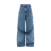 Cotton Oversize Jeans by The Attico, large asymmetrical cargo patch pockets at knee and back, front closure by logoed button and concealed zipper, paneled design.